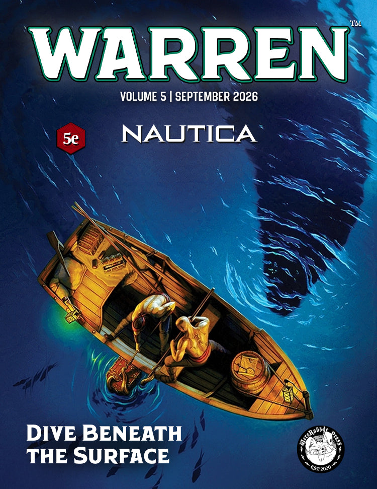 In the vast expanse of the ocean, legends whisper of hidden treasures and ancient mysteries. Nautica beckons you to explore its depths, where daring Privateers and enigmatic River Dwarves forge their tales. Equip yourself with mythical artifacts, command the tides, and face creatures from the deep. Every page of Warren Magazine’s inaugural issue is a gateway to new adventures and untold stories.